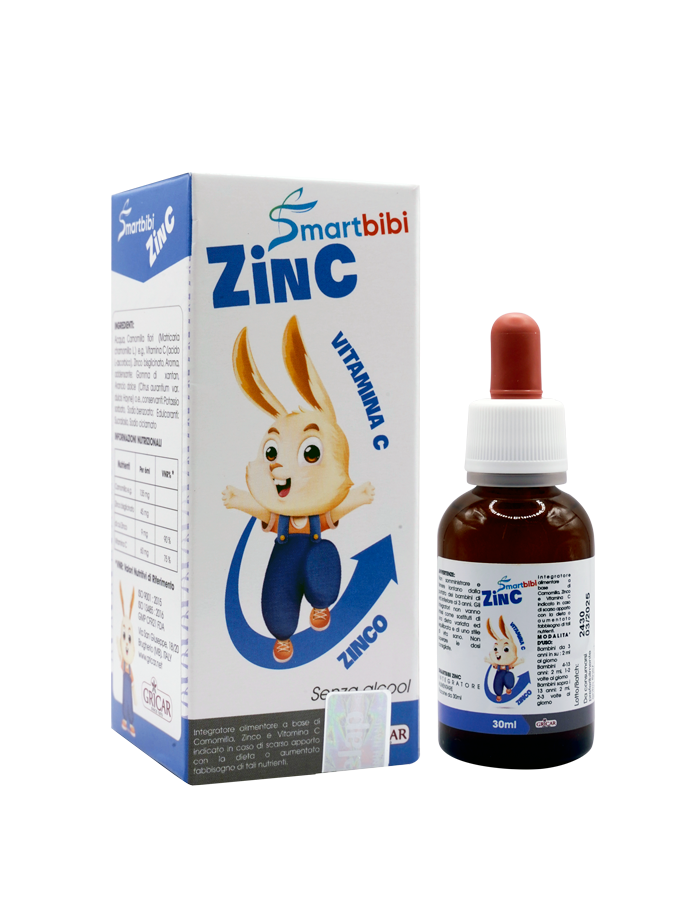 - Smartbibi ZinC bổ sung kẽm bisglycinate (hấp thu cao hơn các loại kẽm thông thường) và vitamin C giúp tăng sức đề kháng, hỗ trợ cải thiện tình trạng biếng ăn, chậm lớn ở trẻ.